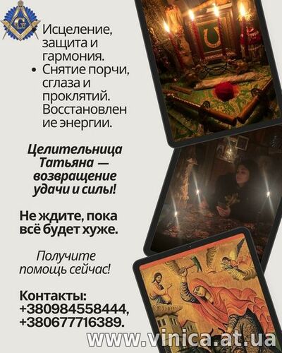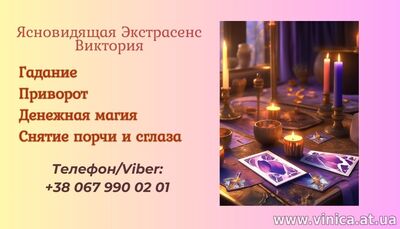 Ясновидящая и таролог. Гадание, магическая помощь, снятие порчи. Татьяна — специалист с большим опытом в сфере эзотерики, магии и траволечения. Она помогает людям восстановить здоровье, наладить ли
